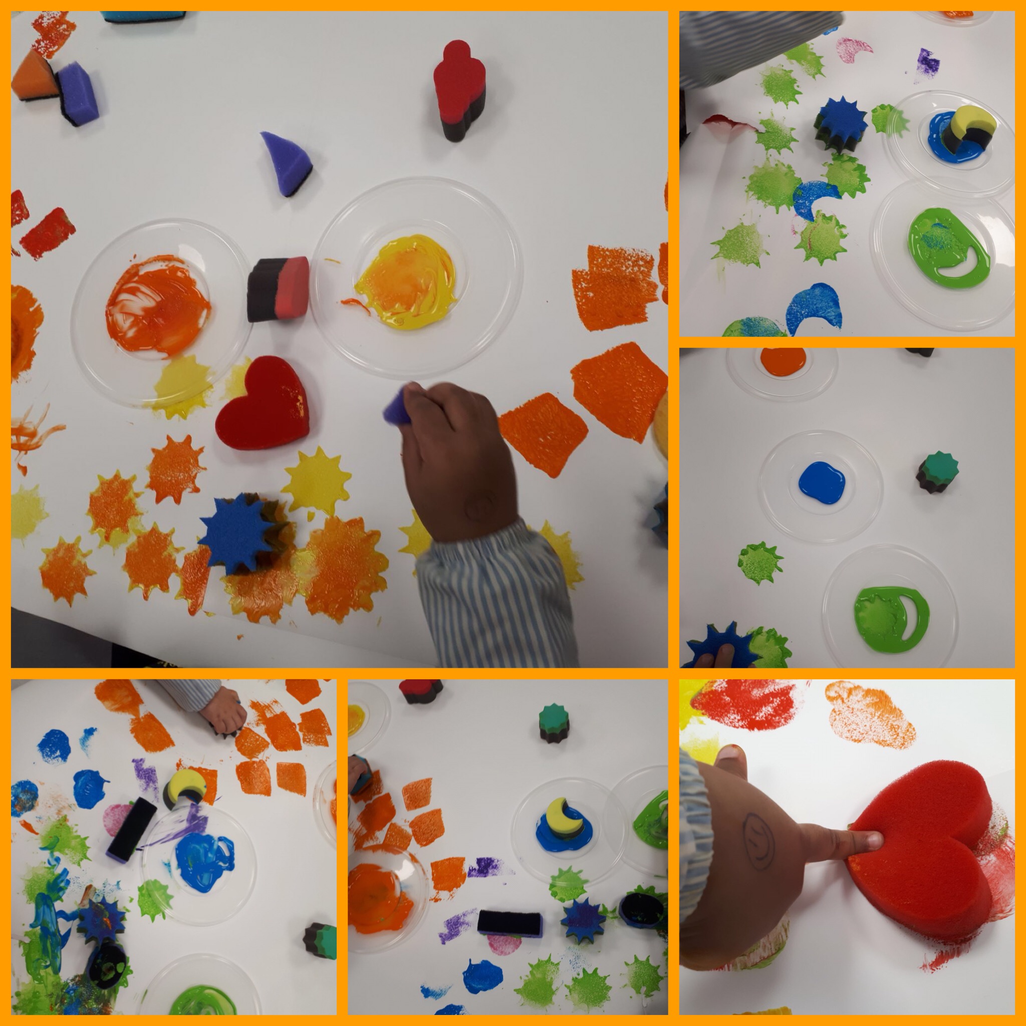 Els alumnes de Bressol desenvolupem la sensibilitat, la creativitat i la intel·ligència mitjançant diferents tècniques en el llenguatge plàstic. Aquest cop amb segells d’esponja. Són uns artistes !!